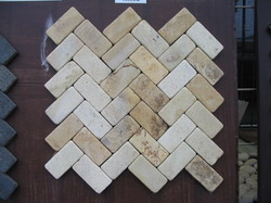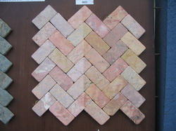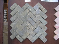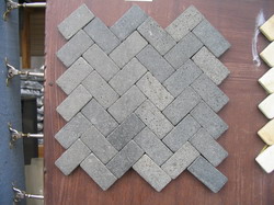 The herringbone pattern provides a different dimension to the matted tile range. Interlocking to create a geometric edge to your new space. The left of the photo is natural, the right is finished with a sealant which does increase the durability and darkens the colour slightly.