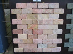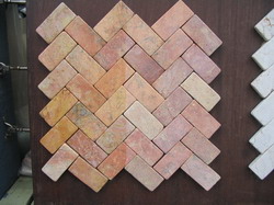 Interlocking design allows tiles to be easily linked together to cover larger areas. The left of the photo is natural, the right is finished with a sealant which does increase the durability and darkens the colour slightly.