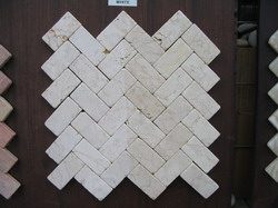 The herringbone pattern provides a different dimension to the matted tile range. Interlocking to create a geometric edge to your new space. The right of the photo is natural, the left is finished with a sealant which does increase the durability and darkens the colour slightly.